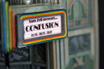 A detail view of the automata sculpture "Confusion". It showcases a movie sign reading 'Sam Zell presents… CONFUSION" along with the numbers 01:79 - 06:75 - 20:07.
