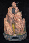 The sculpture features a vertical mining operation with mining tracks in a spiral through the rock. The doors are labelled 'Trust' and mining carts can travel the tracks.