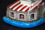 A detail view of the automata sculpture "Quantitative Easing". It shows the school, barn, and drive-in figurines embedded into the base of the automata sculpture.