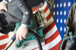 A detail view of the automata sculpture "Quantitative Easing". It shows tiny printed American bills coming out of a printing machine that the automata's main figure sits upon.