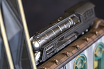 A detail view of the automata sculpture "View From Above" showing the top view of the train.