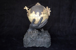 A side view of the automata sculpture "The Whole World in Our Hands".