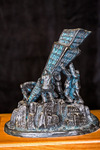 The sculpture features business people planting a skyscraper among other skyscrapers.
