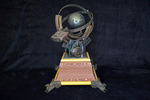 The sculpture features a globe; the surrounding mechanisms resemble a gyroscope and sextant.